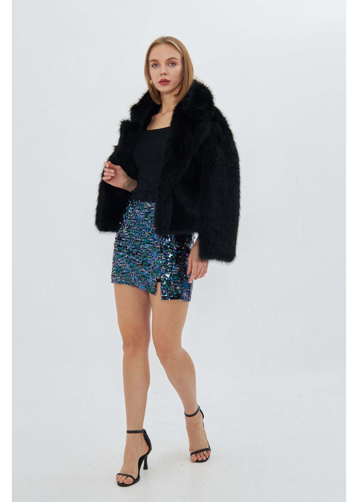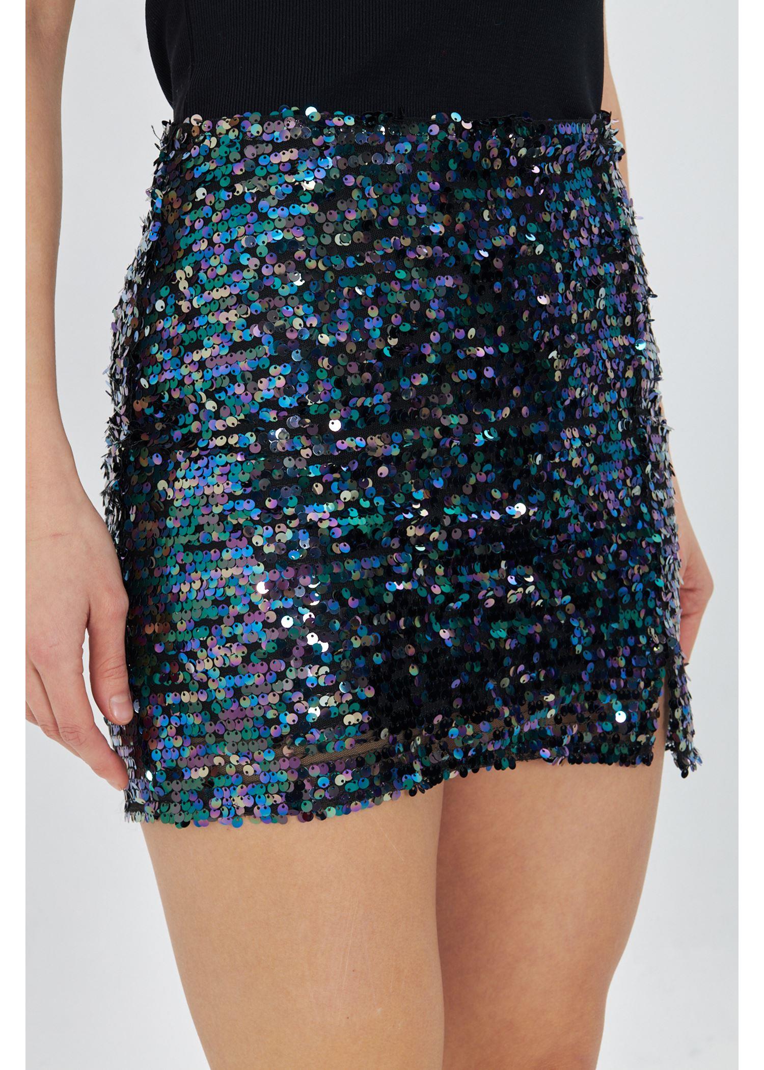 Yırtmaçlı Pul Payet Mini Etek Yırtmaçlı Pul Payet Mini Etek